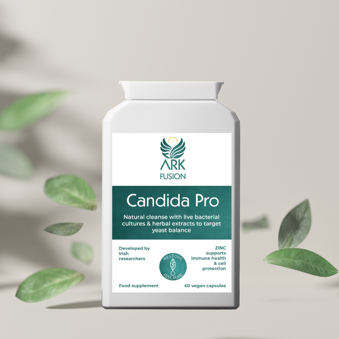 Candida Pro: Magnesium caprylate, Garlic powder, Cinnamon powder, Quercetin extract, Zinc citrate, Aloe vera leaf extract, Clove bud powder, Grapefruit seed extract, Thyme, Glucosamine (vegetable source), Rosemary, Oregano, Beetroot extract, Lactobacillus acidophilus, Bifidobacterium bifidum, Hypromellose capsule shell.