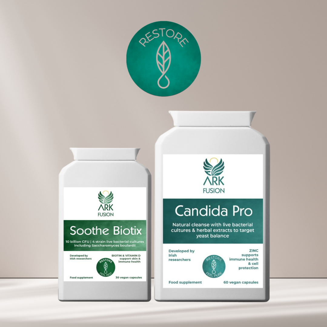 Target Candida overgrowth and rebuild gut health with the RESTORE Power Pack. This bundle features antifungal herbs and probiotics to soothe digestive discomfort and promote a balanced microbiome. Ideal for recovery from antibiotics or addressing persistent gut issues.